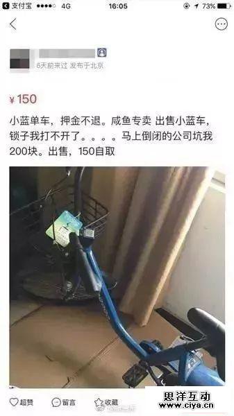 近日,已有未收到退款的用户在网上出售小蓝单车来“抵债”,标价150元一辆。