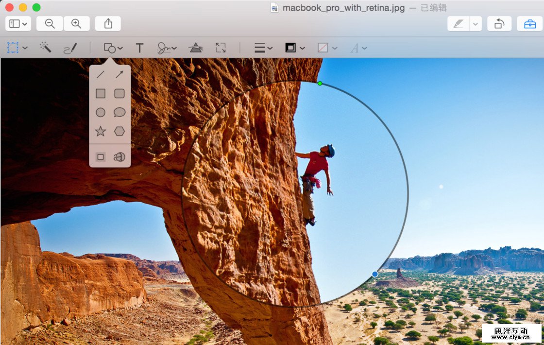 Snagit 中要表现放大效果只需要用圆圈套索选中后复制粘贴并调整粘贴图片的大小即可,不过这种方式没办法设置放大部分的边框和阴影,比较简陋。「预览」程序中有专门的放大效果设置,由工具栏选择放大镜,绿点调节放大倍率,蓝点调节放大区域。