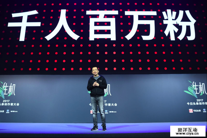 今日头条每年都有大动作。2015年推“千人万元”政策;2016年拿10亿元扶持短视频;今天,2017年今日头条创作者大会上,今日头条创始人、CEO张一鸣宣布,今日头条推出“千人百万粉计划”。未来1年内,在平台上扶持1000个拥有100万粉丝的账号。