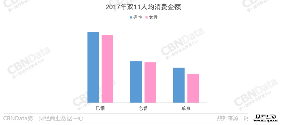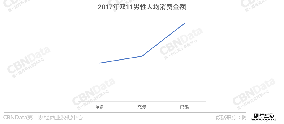 汉纸们的双11消费金额,在脱单后提升了18%。恋爱中的男性,在双11期间花的比他们的女朋友还多!大概......是在提前买圣诞节礼物?
