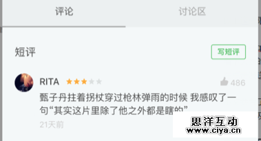除了虎扑、网易云音乐之外,豆瓣影评的评论,使用的也是截取式评论,我前面说过,豆瓣不同地方使用了不同的评论结构,这种方式可能加大了开发量,但是根据不同的业务使用更合理的显示方式,这也是产品经理的技能之一。