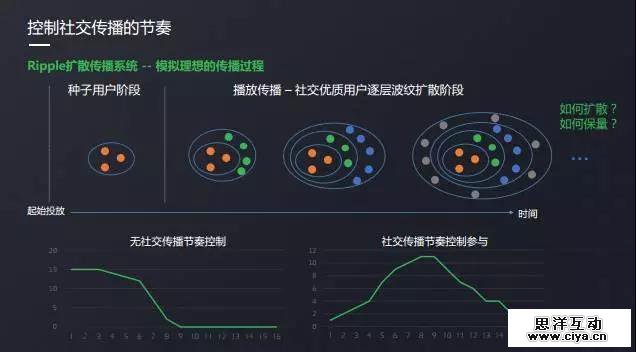 社交传播节奏控制的核心思想是先传播给优质人群,再让优质人群带动其他人。如下图所示,Ripple 扩散传播系统。
