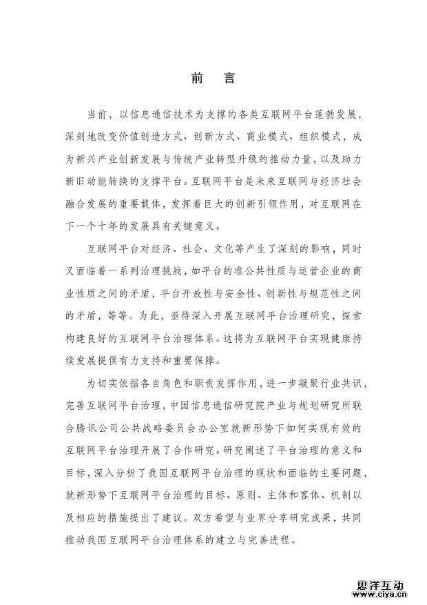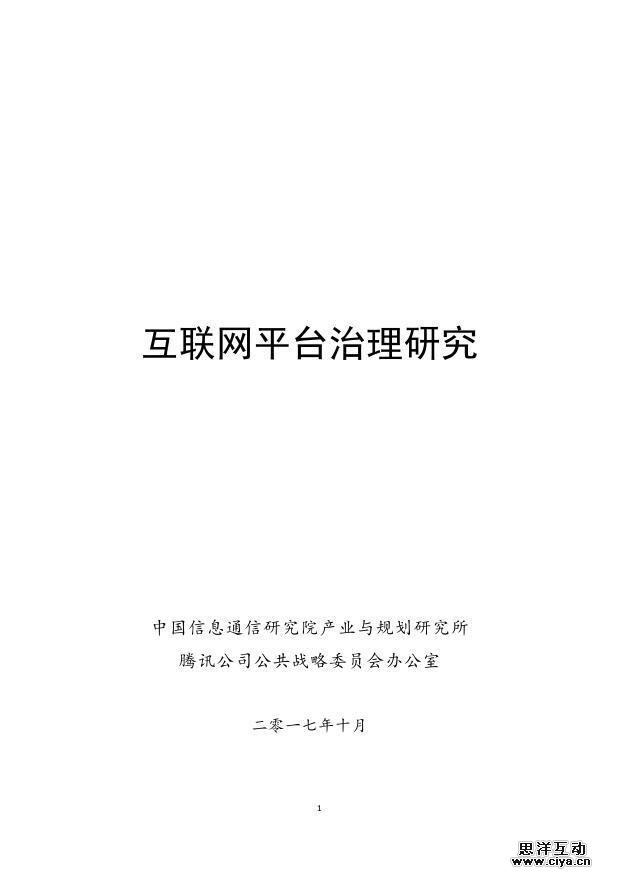 为切实依据各自角色和职责发挥作用,进一步凝聚行业共识,完善互联网平台治理,中国信息通信研究院产业与规划研究所联合腾讯公司公共战略委员会办公室就新形势下如何实现有效的互联网平台治理开展了合作课题研究。课题采取开放式研究模式,邀请来自政府、企业、行业协会、高校等各方面的专家组建专家组,对研究工作予以全程指导。课题执行过程中进行了充分的案头研究,并与专家和企业进行了深度的讨论,组织了多次有针对性的调研和专家研讨会。课题初步成果在工业和信息化部信息通信经济专家委员会(ECICE)2017年第二季“经专对话”研讨会上进行了专题汇报,得到了与会专家的一致认可和高度赞赏。会后,课题组根据各方专家的意见对研究报告进行了进一步的修改和完善,形成了《互联网平台治理研究报告》(以下简称“报告”)。