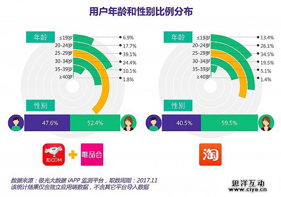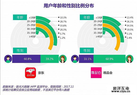从应用数据层面上,本次京东和唯品会合作最大的价值来自双方在用户群体上的差异性,双方的用户池可以得到较大程度上的拓宽,还可以平衡自身的用户性别偏差。