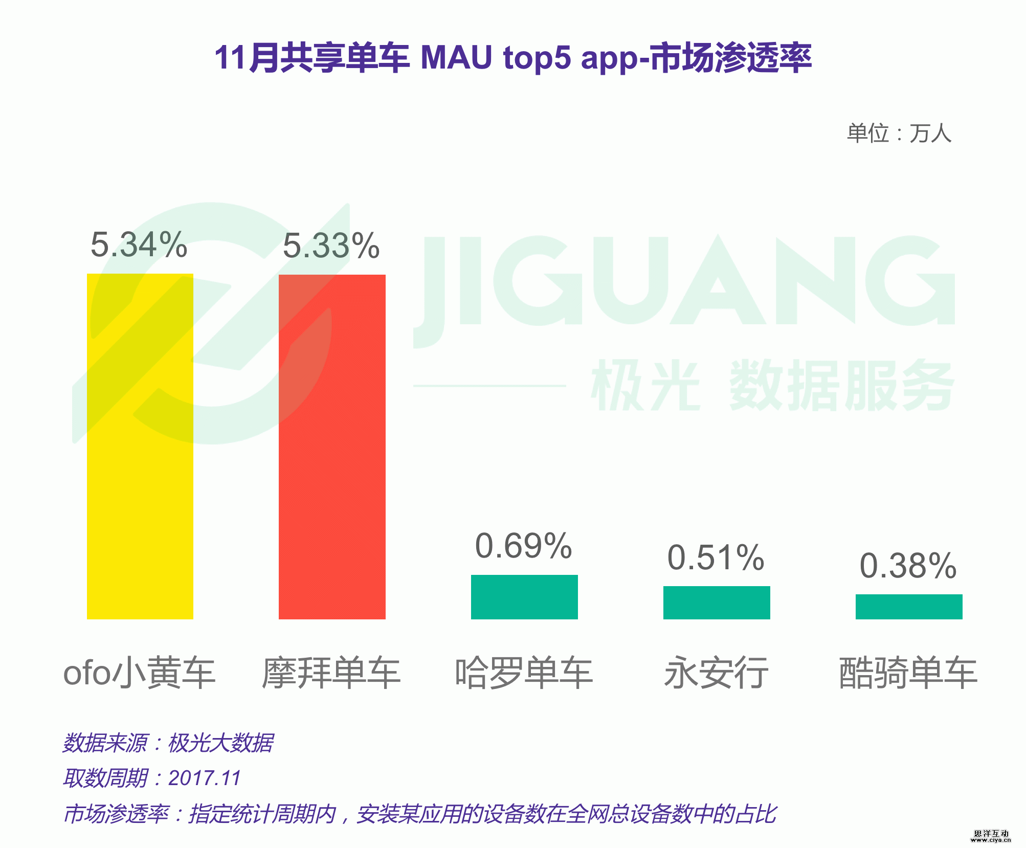 11月共享单车 MAU top5 app(市场渗透率)