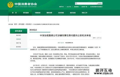 不仅如此,用户的押金问题一直也没有得到应有的处理,拖欠用户押金情况严重,更是引来中消协的指责以及控诉。中消协方面表示,根据消费者反映和前期调查情况,中国消费者协会向有关公安机关提交刑事举报书,举报酷骑(北京)科技有限公司及其主要负责人涉嫌刑事犯罪,申请公安机关立案侦查。