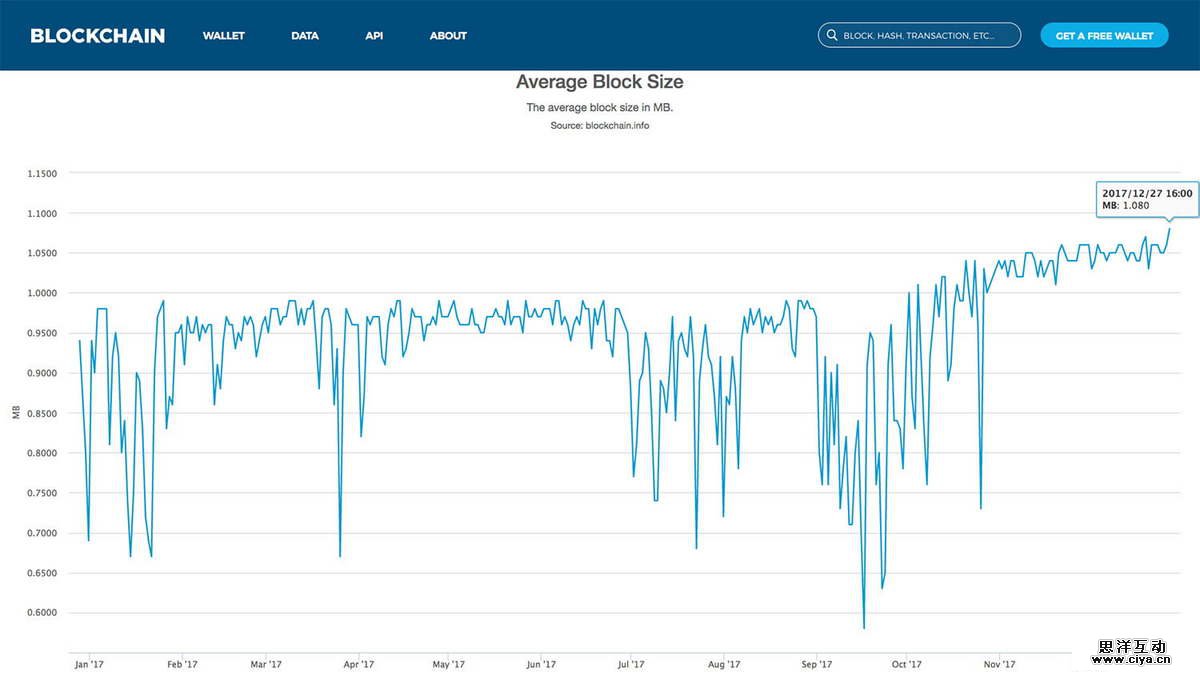 2017年比特币平均区块规模