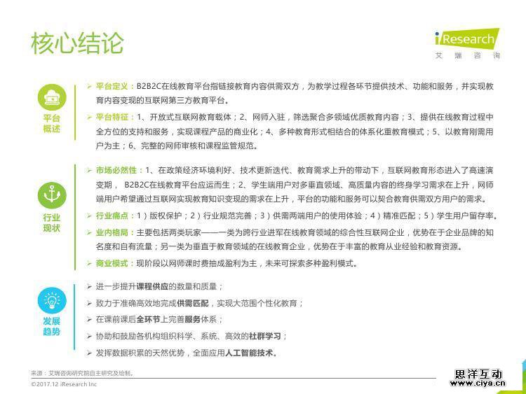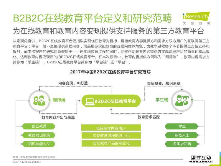 本报告以B2B2C在线教育平台为主要研究对象,描述分析B2B2C在线教育平台在产品和服务特征、产业链、商业模式、典型企业案例和发展方向,探讨B2B2C在线教育平台行业的现状和未来发展趋势。