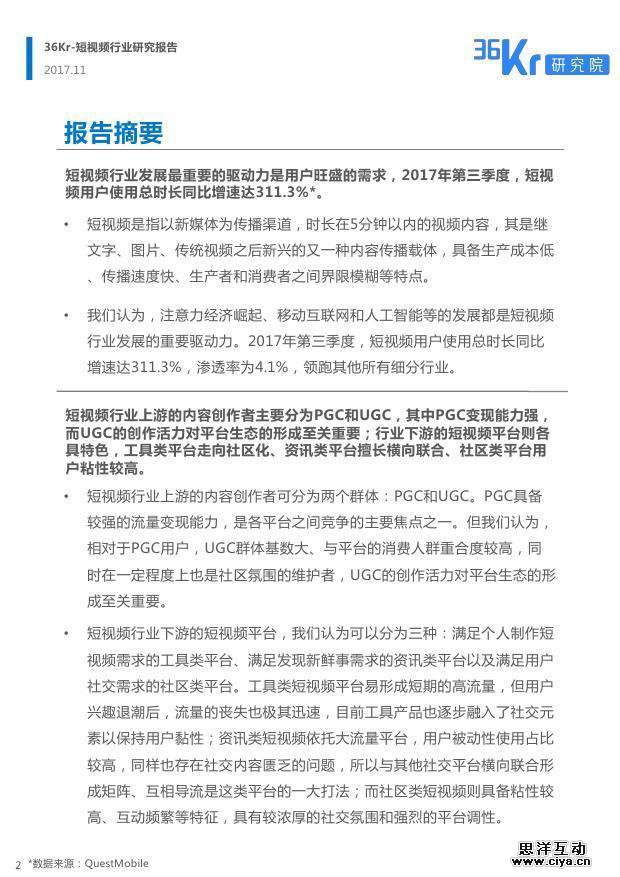 本报告中我们将短视频行业产业链划分为内容创作者和短视频平台两大部分,主要探讨了行业现状、竞争格局、主要玩家分析、未来发展等问题。