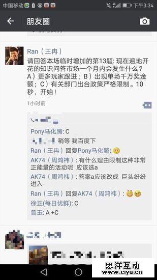 而直播答题还会面临一个最大的不确定性麻烦——可能会遭遇政策上的钳制。比如前几天易凯资本创始人兼CEO王冉在朋友圈提问:知识问答市场一个月内会发生什么?并给出3个选项——A:更多玩家跟进;B:出现单场千万奖金额;C:有关部门出台政策严格限制。马化腾选了C。但周鸿祎却认为:“有什么理由限制这种非常正能量的活动呢?