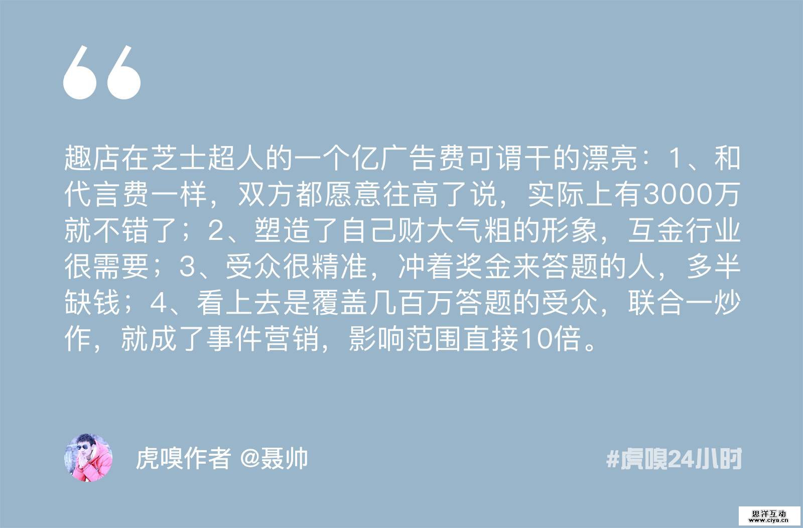 「一周嗅评」是虎嗅运营24小时分舵正在试水的一个小栏目。反思了很久,其实,我们更希望通过“24小时”捕捉一些有意思的内容或对新闻不同角度的解读,不想单纯的成为机器人短消息的集合体。这不,我们邀约了一些虎嗅认证作者、业内大佬和知名KOL,针对本周的互联网热点新闻或事件,进行观点分享或短评。「一周嗅评」大概可以看作是“24小时”的一周精选啦~
