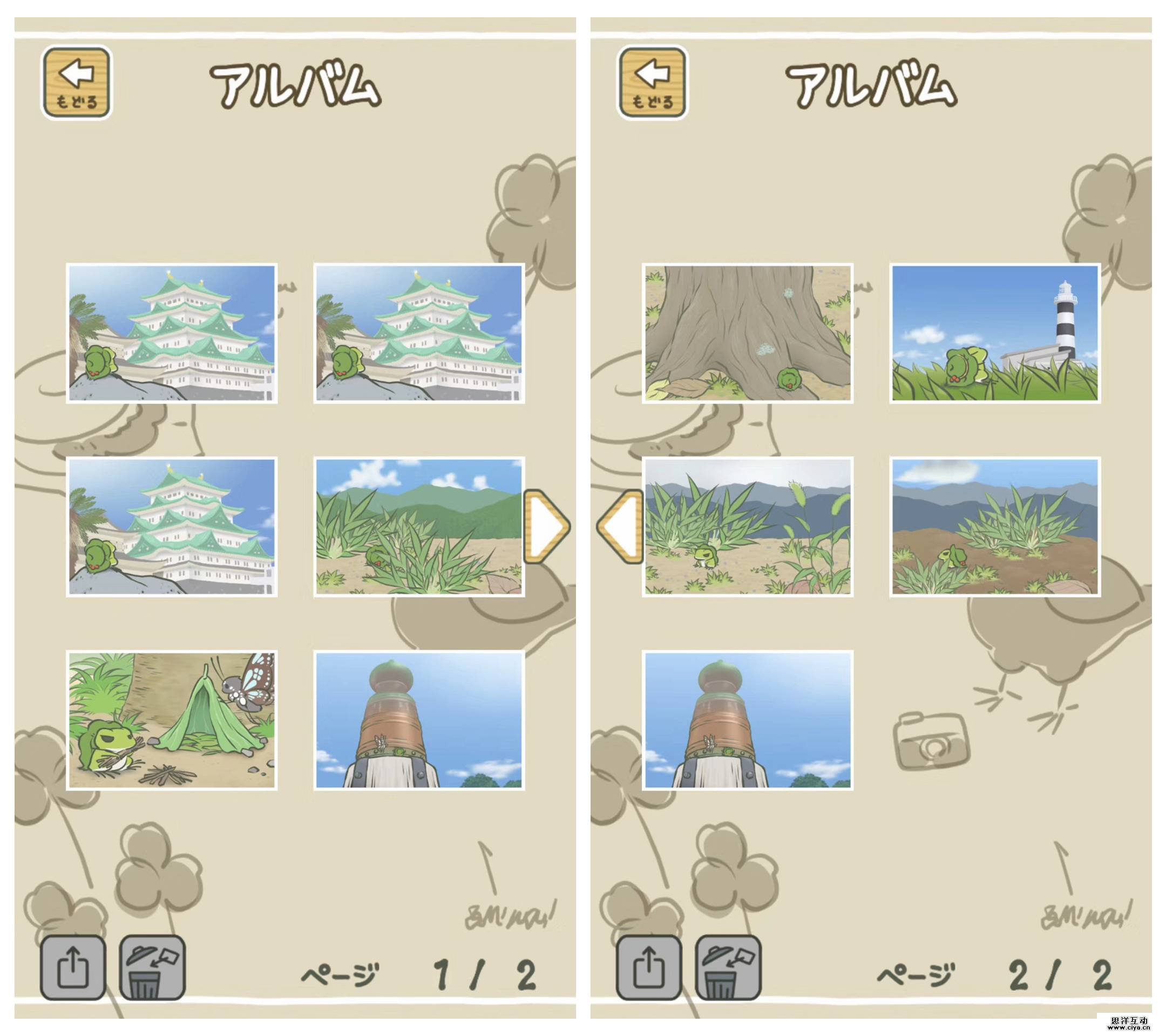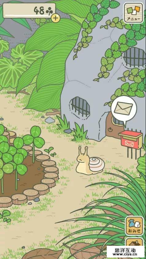 青蛙旅行中会遇到一些朋友,比如松鼠,蝴蝶;而一些小动物还会来到家里做客,比如名为“まいまい”的蜗牛,玩家需要用名特产来招待它们,之后也能收到它们的回礼。庭院中的邮箱可以接收小青蛙的来信、访客回礼。