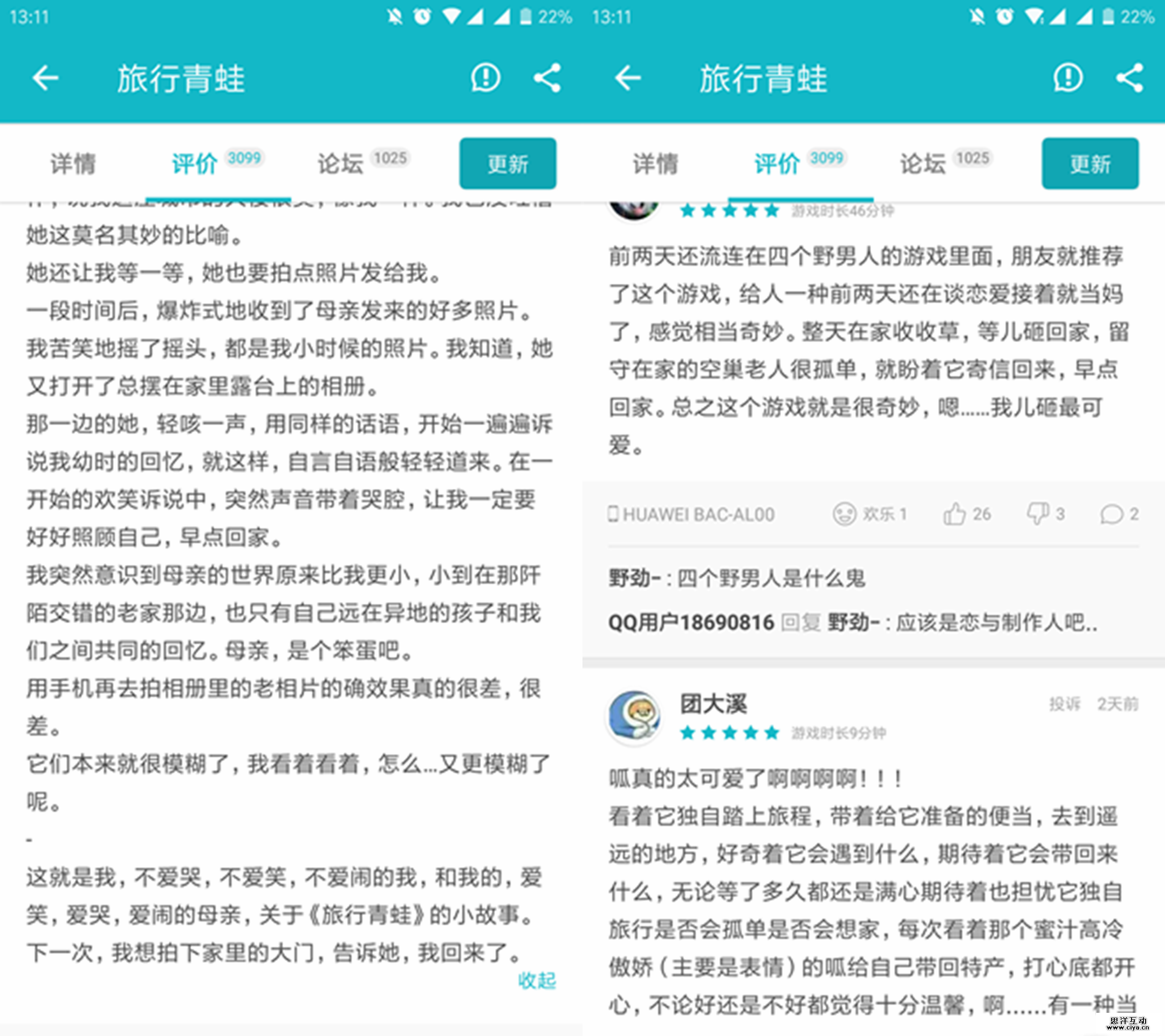 有许多玩家都说,蛙儿子让玩家们看到了曾经的自己。当你放假在家,父母们总是催你要多出去走走;但当你出了远门,又是他们一遍一遍的问你什么时候回家。许多玩家没有当妈的经历,却在这款游戏中体会到了父母曾经对自己的那份感情。