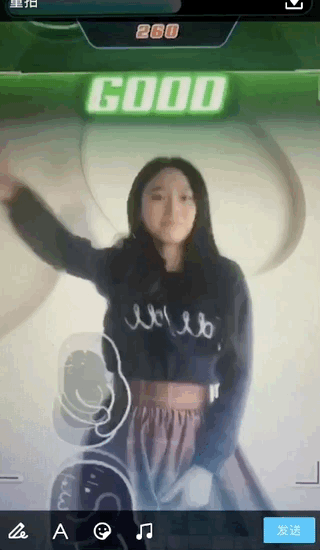 以新奇的“高能舞室”为例,概括来说,它是手机QQ新推出短视频社交玩法,用户可以根据屏幕提示动作录制跳舞短视频并进行打分,舞蹈视频可通过QQ社交关系链分享互动。“高能舞室”是将人体姿态识别技术融入潮流的短视频形式中。这种游戏化玩法满足了年轻人在线上社交网络释放自我、渴望互动的社交需求。