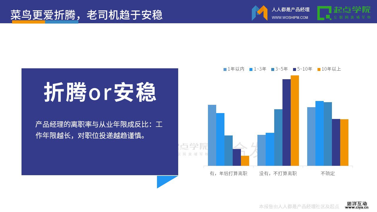 产品经理的离职率与从业年限成反比,工作年限越长,对职位投递越趋谨慎。
