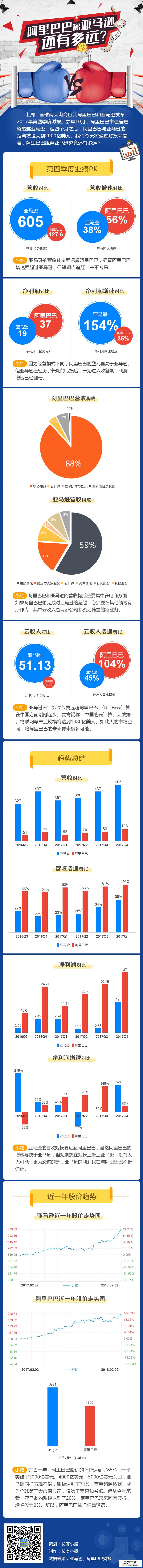 上周末,阿里巴巴和亚马逊两大电商巨头陆续发布了最新财报。两家公司之间究竟有多大的差距?