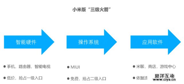 雷军曾经研究了阿里巴巴十多年创业历史,并总结了创业最重要三点:巨大市场需求、靠谱团队和花不完的钱。成立 7 年来,小米也一直在寻找足够大的市场,目前来看,小米的商业模式经历了以下的三级跳,所瞄准的市场也越来越广阔,水大鱼大,这也保证了小米有足够大的成长空间。