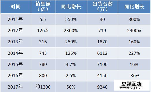 三年过去,小米成功孵化了多家企业,小米手环、空气净化器等产品受到消费者认可。 2017 年,小米生态链年销售量突破 200 亿人民币,同比完成了100%的增长。