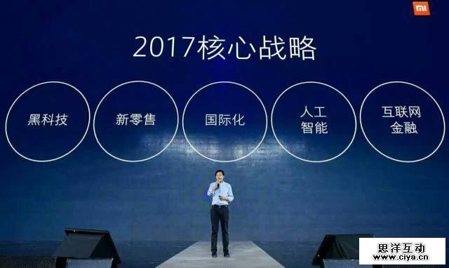 经历了 2016 的布局调整后,小米 2017 年战略看起来十分明晰,包括黑科技、新零售、国际化、人工智能、互联网金融,主要分为硬件、互联网、新零售三大块: