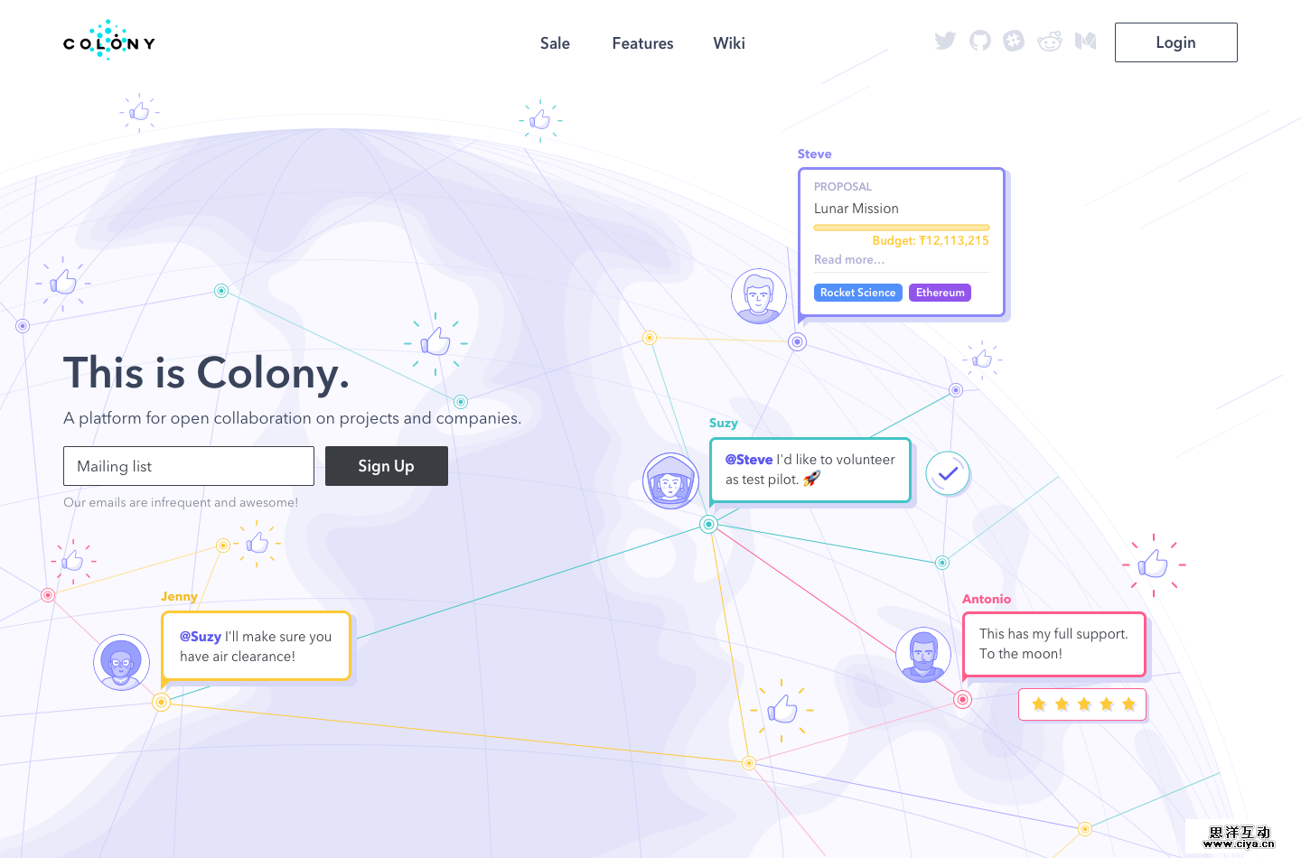 提出需求的是英国公司 Collectively Intelligent Limited,他们旗下有一个名为 Colony 的线上数字协作平台。这个平台的创建,是旨在帮助全世界不同国家和地区的人民通过它来共同创建公司。在社区中,不同的用户可以围绕一个目标进行合作,协同创造,共同管控资金,分享项目收入,而在此过程中这些人甚至都不一定需要认识对方,只需要目标一致,通过平台协同即可。
