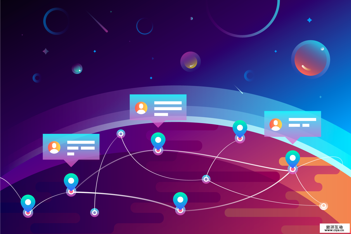 自定义的插画常常会出现在着陆页当中,作为重要的UI组件帮助用户理解产品的功能和概念。所以,在首图的位置使用插画是相当普遍而有效的选择。为了设计出更加有效的首图插画,Tubik团队中的 Arthur Avakyan 和 Denis Boldyriev 也参与到首图插画的头脑风暴和创意设计当中来。设计师尝试将地球上不同区域的用户相互连接的概念来进行设计。下面就是他们基于这一概念设计出来的插画: