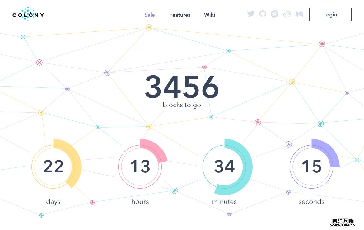 Colony 有它独特的网络体系和金融体系。为了拥有足够的所有权,用户需要通过工作来获取更多的代币,获取的代币越多,用户能够通过Colony 的网络获得更多的权限。为了吸引用户的兴趣,并告知他们代币的销售开始,客户要求我们设计一个特殊的倒计时页面。