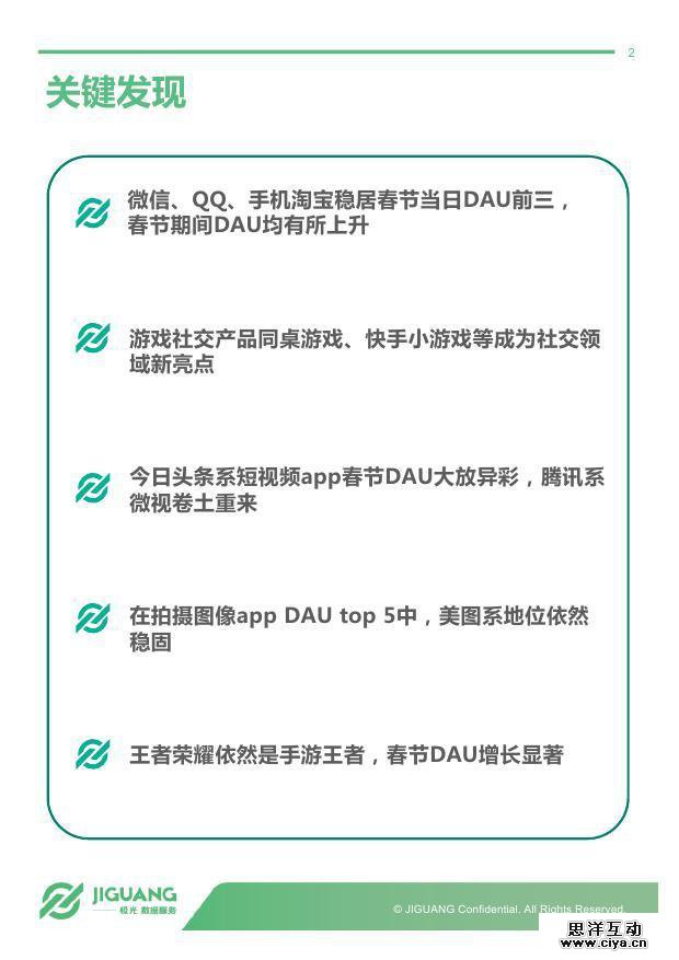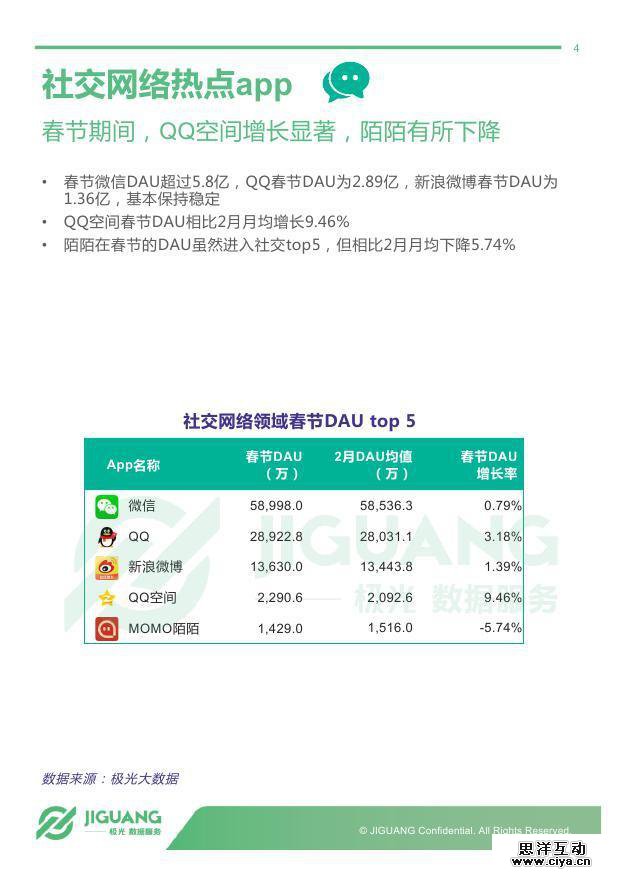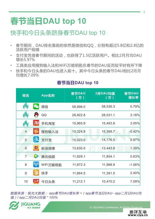 春节是国人最重视的节日。在移动互联网时代,微信、支付宝、王者荣耀等等既具有时代气息又不乏传统年味的app 也逐渐变成了春节中的关键词。线上红包、视频拜年,甚至亲友团组队开黑已经成为春节新民俗。那么春节期间到底哪些app最受人们青睐?又有哪些app因春节遇冷?极光大数据发布《不看春晚看手机:春节期间热点app数据观察》,看看这个春节除了亲友、美食与春晚,陪伴你的还有谁。