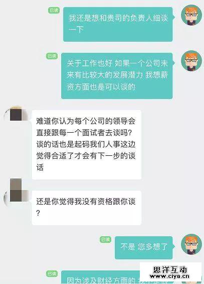 因为觉得这位HR并不专业,所以李敏提出希望和部门负责人,或者公司负责人直接沟通,但当即就被拒绝。对方认为李敏在行为上是看不起自己,怀疑自己的业务能力,语气随即不客气起来,“这不是个案,这上面很多HR都有这样的毛病。”