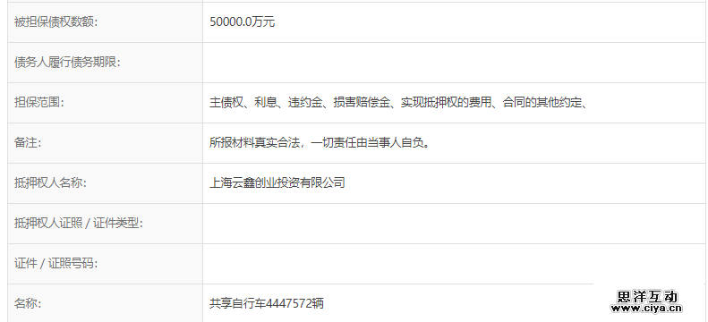 第一笔借款 5 亿,用了 4447572 辆小黄车做的抵押,相当于一辆车抵押了 112 元左右。