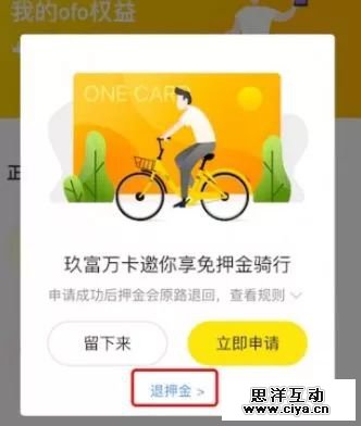现在 ofo 已经取消了这个玖富万卡的合作了