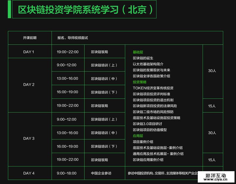 区块链投资学院(BIA)发布的第1期课程,培训时间为3天2夜,每人88888元,后续将逐渐上调。