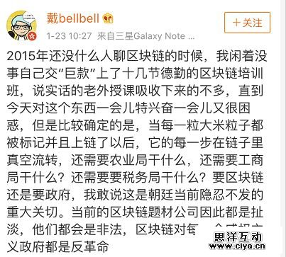 其实现在能挖掘到最早的培训开始于2015年,微博名为“戴bellbell”的网友发微博表示自己曾在2015年还没什么人聊区块链的时候,就“闲着没事”自己交“巨款”上了十几节德勤的区块链培训班,该班是外国讲师授课,但他表示“说实话吸收下来的不多。”