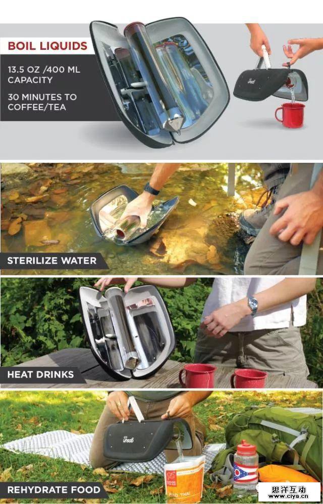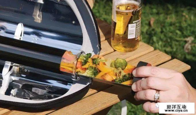 GoSun Go有点像我们在高原当中看到的热水器,采用太阳光聚光的原理对食物进行加热处理,只要拉开拉链对着阳光固定好,就能在 20-30 分钟内煮好一份热食。