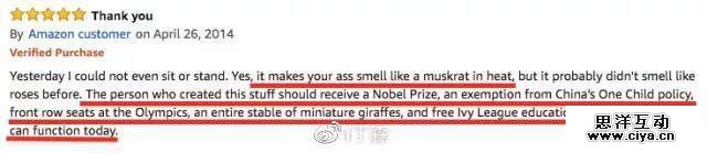 翻译:虽然这玩意让你的闻上去好像有只麝鼠在你的py里面发情,但发明这个药的人应该拿诺贝尔!应该不计划生育!应该在奥运会上坐第一排!应该让他的孩子免费读常青藤盟校!