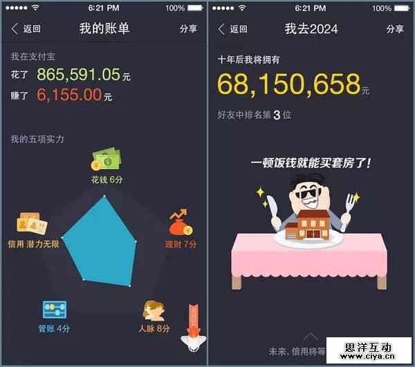 支付宝的年度账单则满足了目标用户“炫富”的心理,并成功形成了潜在的攀比机制,引发了大量用户参与分享。