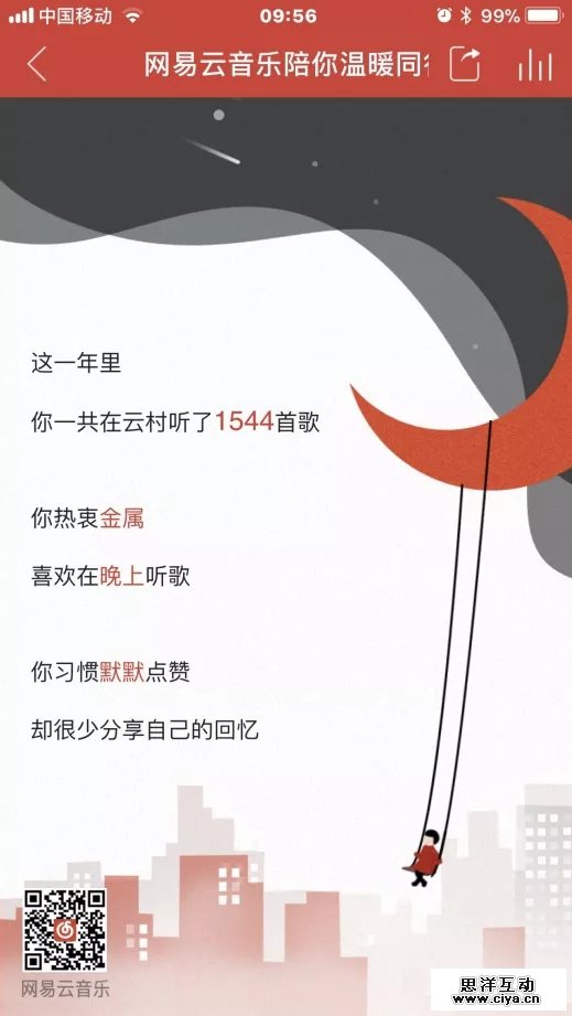 以大家熟知的网易云音乐的年终盘点举例,网易从歌曲及听歌时间频率等层面,帮助它的目标客群——文艺青年,树立了音乐品味及文艺的细分形象,一时之间在朋友圈引爆了流行。