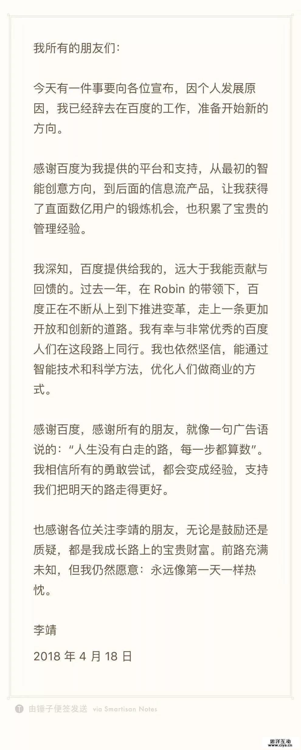 2018年4月18日,李叫兽加入百度16个月后宣布离职,27岁的他,准备开启新的人生。