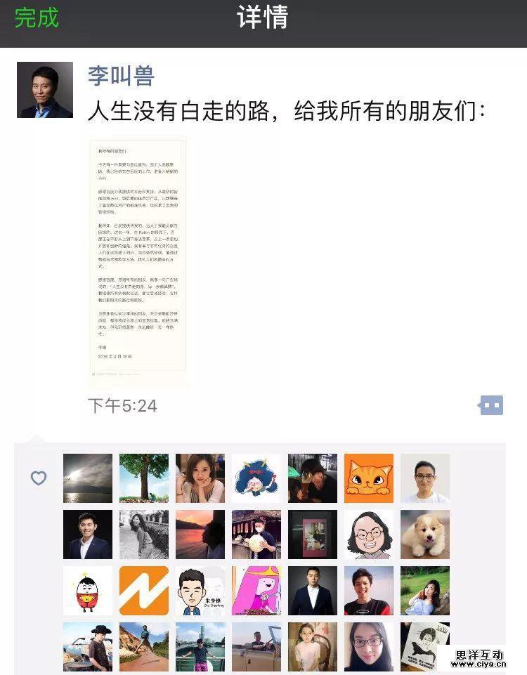 事情来的很突然,2018年4月18日17:24,李叫兽发了下面这条朋友圈,宣布离职: