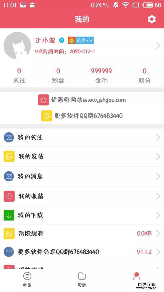 整个色情APP界面分为“社区”、“资源”、“我的”。
