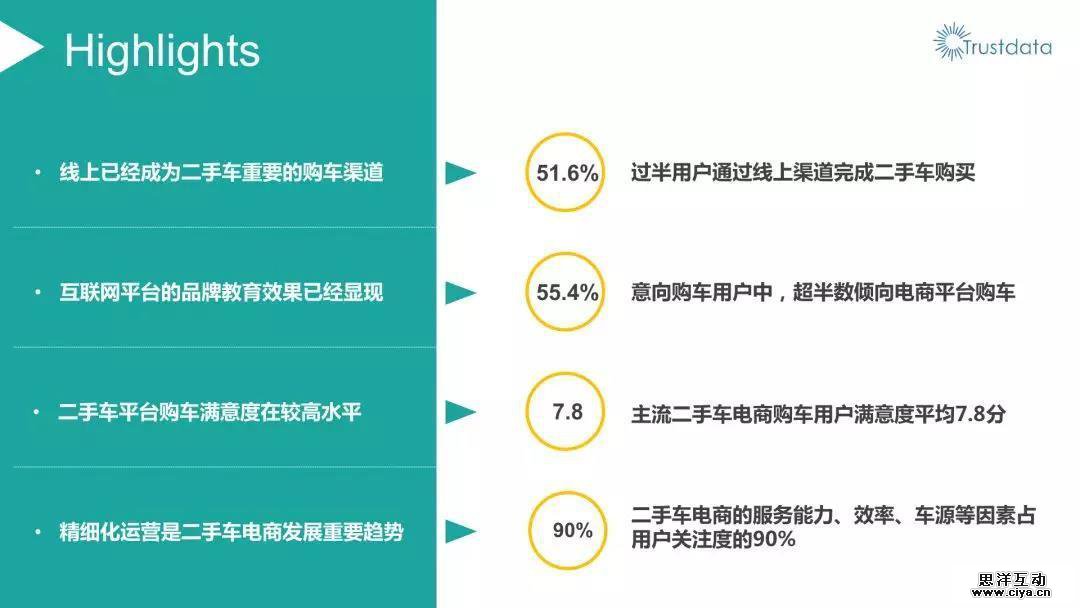 二手车电子商务发展迅速。随着广告宣传的全面铺开,用户教育逐渐成熟,二手车进入消费者购车选择范围,市场参与者众多,市场竞争激烈。二手车交易市场具有极大的潜力。
