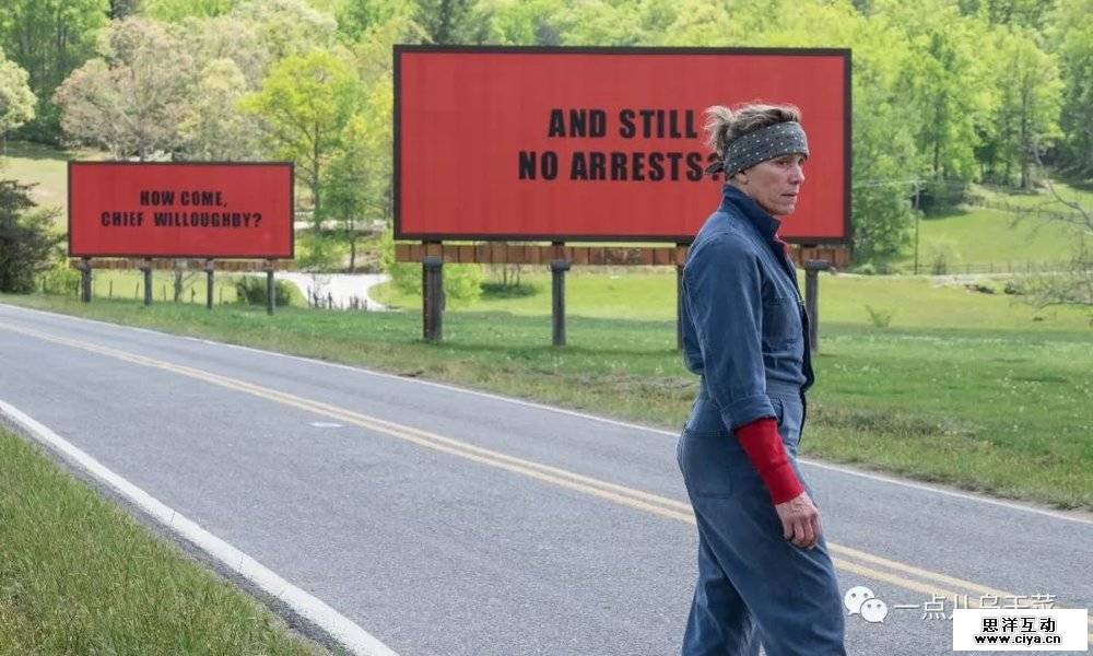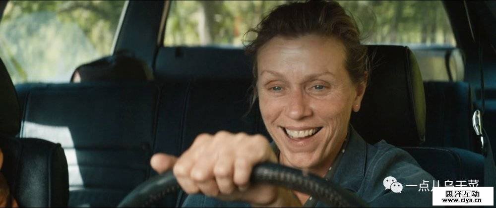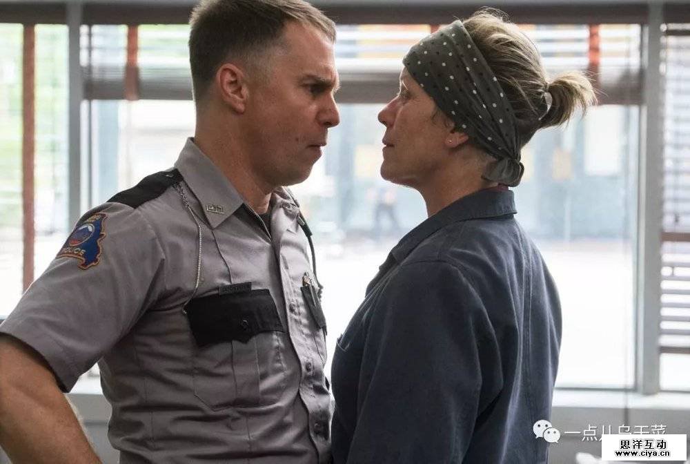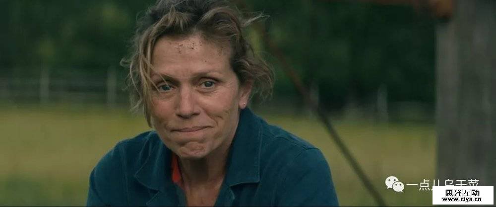 弗兰西斯·麦克多蒙在电影中饰演的一位脾气暴戾,性格强势且独立的女性,她的生活确实够“丧”,她的丈夫离开了她,和一个十九岁的姑娘同居,她的女儿因为与她争执离家后被强奸杀害,她租用了三块广告牌矛头直指警察的不作为,那个罹患癌症广受镇上人民爱戴的警察局长因此不堪重负而自杀,所有人都批评她的冷漠。除了自己的儿子与好友,她俨然已经已经成了镇上人们的公敌。似乎她生活的一切都乏善可陈,仿若美国版的《被嫌弃的松子的一生》。
