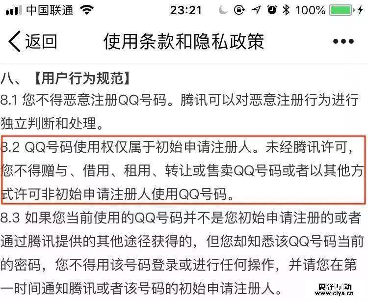 《QQ号码规则》中明确表示,QQ号码使用权仅属于初始申请注册人。未经腾讯许可,用户不得赠与、借用、租用、转让或售卖QQ号码或者以其他方式许可非初始申请注册人使用QQ号码。