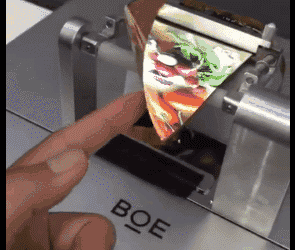 看!就是这块屏幕,0.03毫米的厚度比纸还薄,弯曲折叠,无任何障碍!