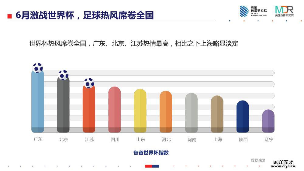 世界杯作为顶级的体育赛事,不仅为全球的体育迷提供了极具观赏性的视听盛宴,更刺激了赛事期间餐饮、酒店、出行等各个领域的消费。美团点评研究院联合京东数据研究院发布《能吃、能玩、爱扎堆——2018世界杯消费报告》,通过赛事期间的用户消费行为数据,洞察本届世界杯背后所呈现的大众消费新趋势。