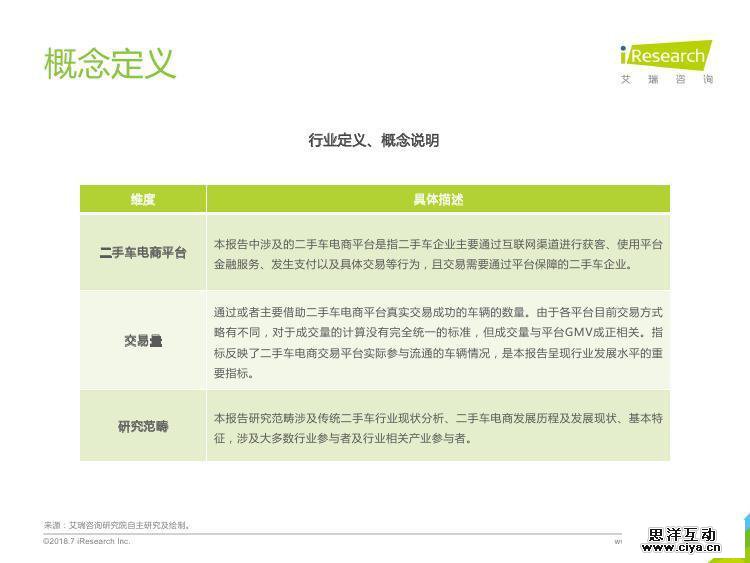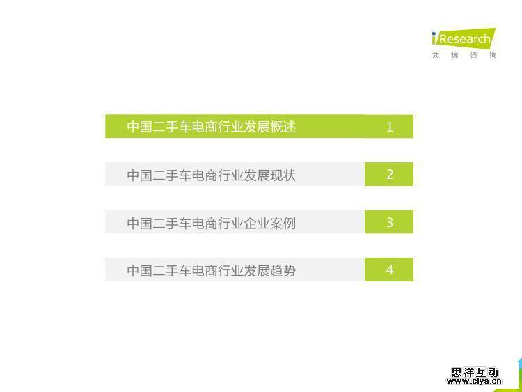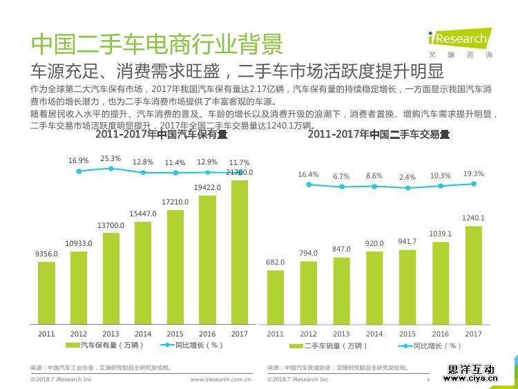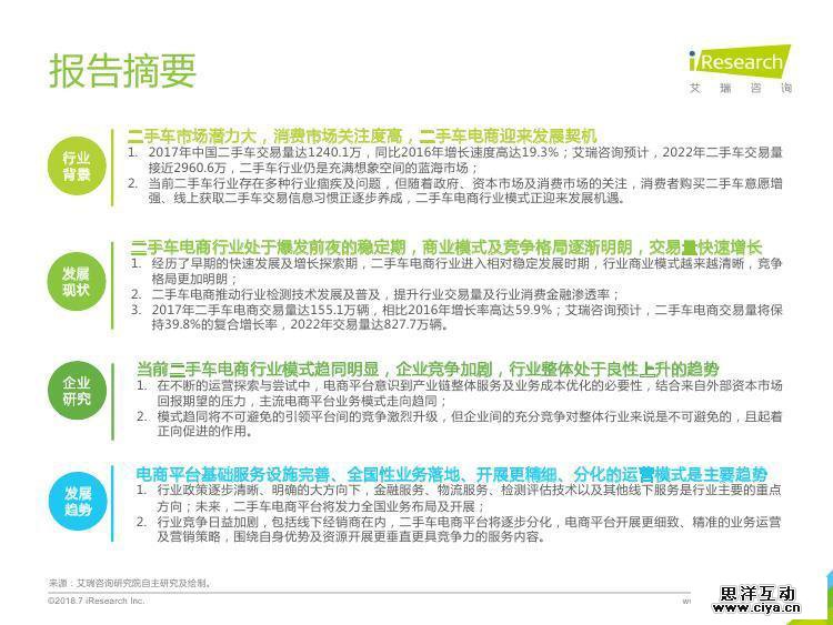 《2018年中国二手车电商行业研究报告》根据艾瑞在二手车电商行业连续性研究积累、行业数据研究与核算及业内专业人士及典型企业的深度访谈与交流,分析了2017年及2018年上半年中国二手车电商行业的发展环境、发展历程、行业现状、产业链、竞争格局、行业规模、消费者、经销商及相关行业等,对行业重点企业的商业模式及市场策略进行了多角度分析解读,对行业发展趋势做了一定的预判及分析。希望此份报告能够为关注并期望了解中国二手车电商行业的朋友提供参考。