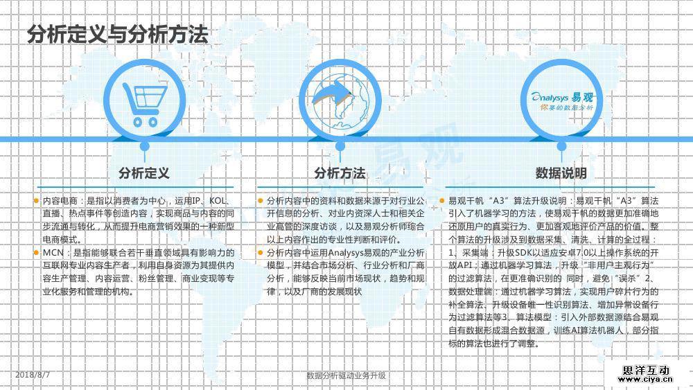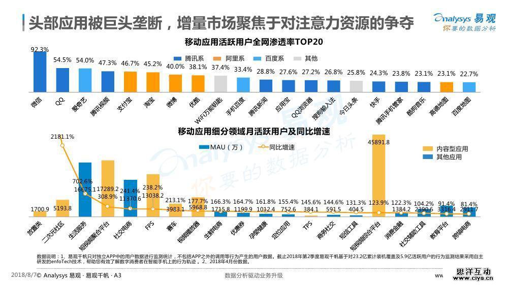 2018年7月6日,易观发布了《中国内容电商市场专题分析2018》。 当前,移动购物市场形成寡头竞争格局,头部应用被巨头垄断,电商平台获客成本持续走高,品牌商及中小商家面临增长困境,亟待探索高效化流量获取方式。而伴随整体社会的娱乐化、时间碎片化、注意力分散化及购物群体年轻化趋势,优质内容成为吸引用户的利器,内容成为电商平台必备的基础设施,淘宝、京东等传统货架式电商平台纷纷发力内容生态打造。 2017年以前,电商平台打造内容生态的方式更多的是作为平台方连接分散的内容创作者,然而,这一内容运营方式存在诸多痛点。MCN模式的爆发为电商平台内容的专业化、高效化运营带来曙光,“电商+MCN”模式赋能电商平台内容供应链建设。 本分析着重分析内容电商,尤其是“电商+MCN”模式兴起的底层原因,剖析内容电商模式对产业链上下游各环节的影响及3类典型的内容电商平台运营模式,并对内容电商行业核心竞争力及发展趋势进行预判。