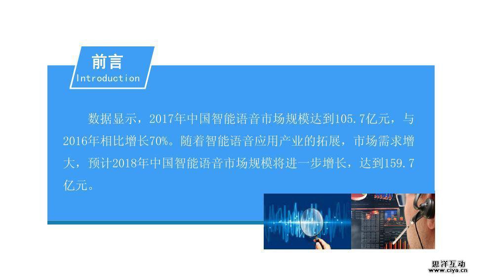 伴随着人工智能的快速发展,中国在智能语音技术的专利数量持续增长,通过庞大的用户群基础以及互联网系统优势明显,国内智能语音公司已经占据一席之地。数据显示,2017年中国智能语音市场规模达到105.7亿元,与2016年相比增长70%。随着智能语音应用产业的拓展,市场需求增大,预计2018年中国智能语音市场规模将进一步增长,达到159.7亿元。