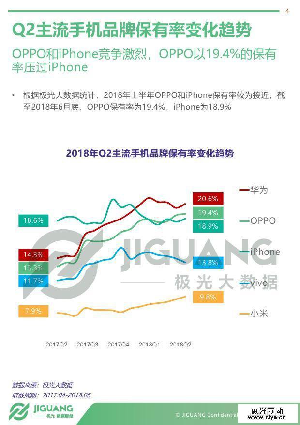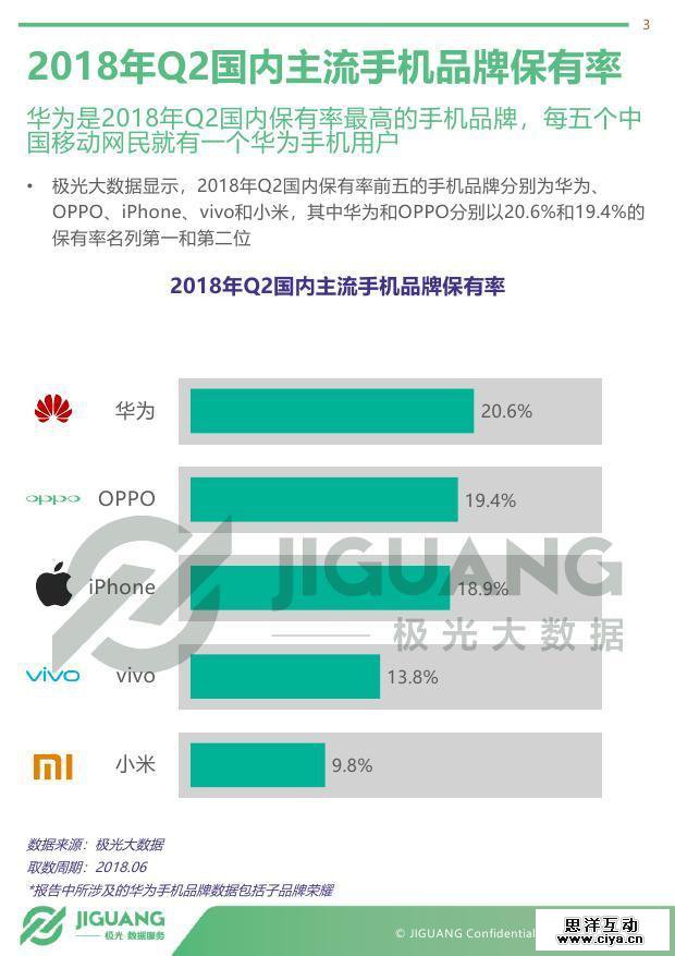 极光大数据发布《2018年Q2智能手机行业研究报告》,从智能手机保有率及销量、主流手机品牌用户忠诚度、主流安卓手机品牌用户画像、手机app安装情况和国内运营商市场等维度分析当前智能手机行业的市场格局。