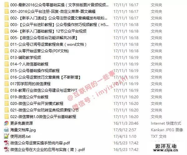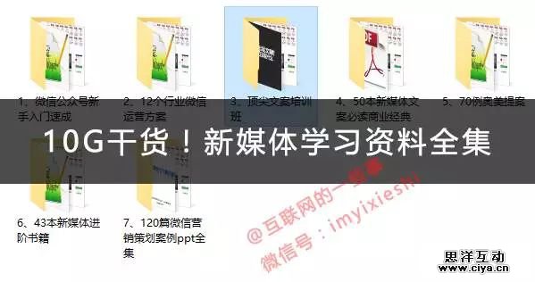 小事哥整理了10G新媒体运营干货,包含有微信公众号入门、涨粉攻略、视频教程、运营方案、文案培训、必读电子书、策划案例等,是运营新媒体的基础知识,供进入新媒体的新人学习。