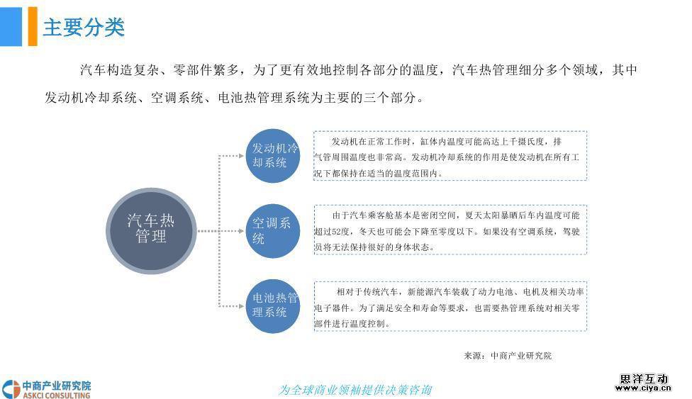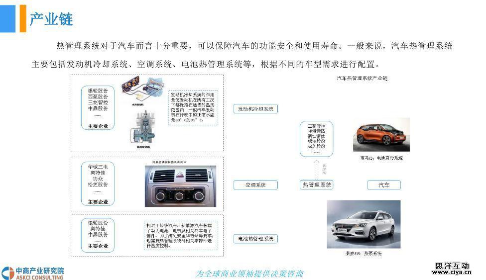汽车是一个非常复杂的系统,由上万个不同材料的零部件组成,而每个零部件的工作温度和材料耐受温度都不尽相同。汽车热管理系统的主要作用就是通过散热、加热、保温等手段,让不同的零件都能工作在合适的温度下,以保障汽车的功能安全和使用寿命。随着国内汽车行业的快速发展,汽车热管理市场需求打开,发展前景广阔。